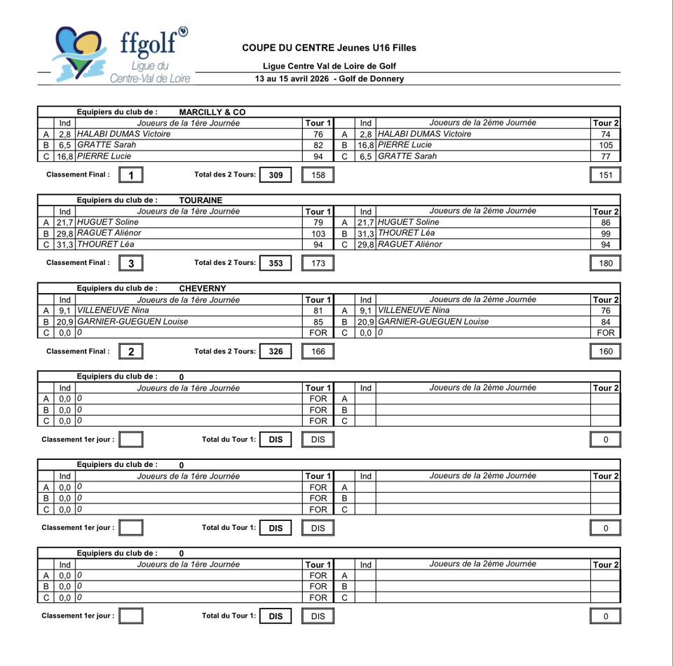 - Félicitations à Marcilly chez les filles et à Touraine chez les garçons, sacrés champions régionaux. Retrouvez tous les résultats ici : https://www.golf-centre.fr/…/coupe-du-centre-jeunes/